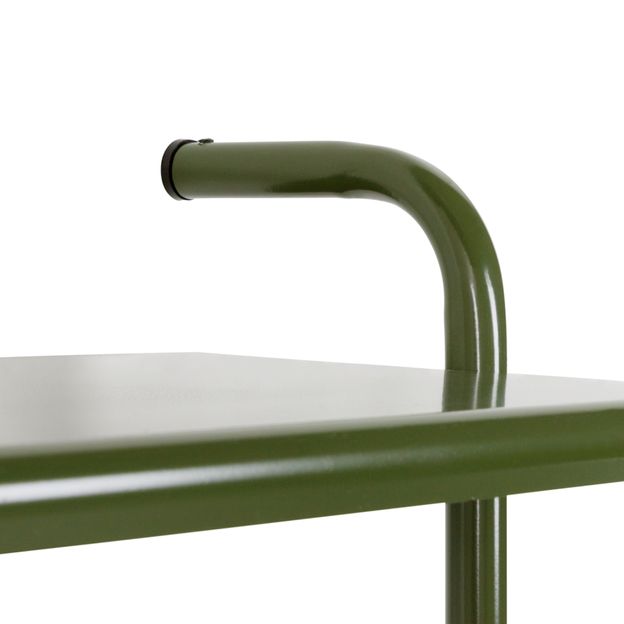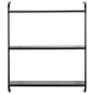 Estante de parede, em tubo e chapa de aço com acabamento em pintura epóxi-pó. Possui 3 prateleiras.
