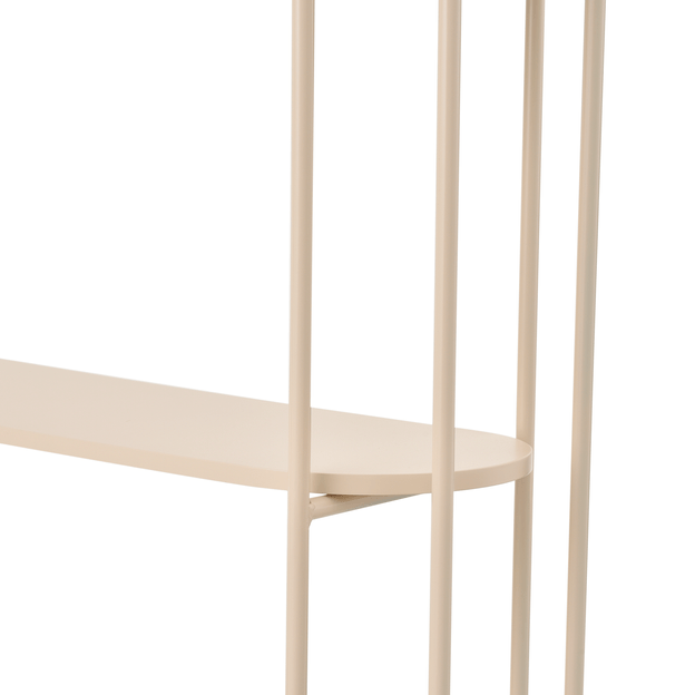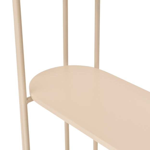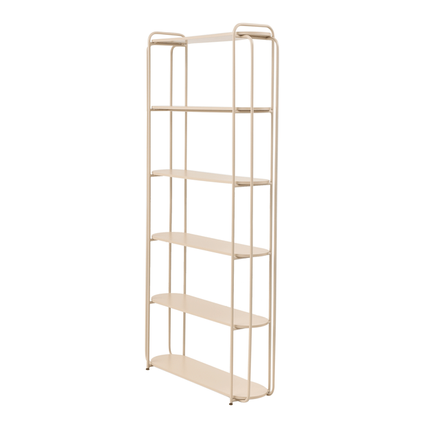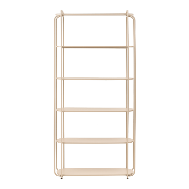 Estante com estrutura em tubo de aço carbono com acabamento em pintura epóxi-pó e 6 prateleiras em MDF (Medium Density Fiberboard) de 15 mm com acabamento em pintura laqueada. Possui sapatas plásticas reguláveis.