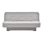 Sofá-cama com estrutura em madeira maciça de reflorestamento (Eucalipto), molas, percintas elásticas, espuma de poliuretano (D28) e tecido tramado 100% poliéster. Possui encosto reclinável em 3 posições, detalhes em capitonês e pés maciços tingidos.