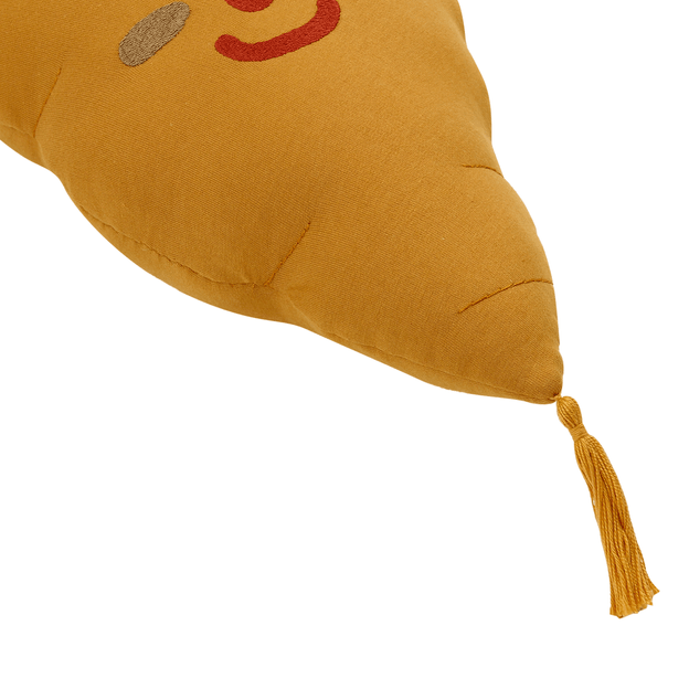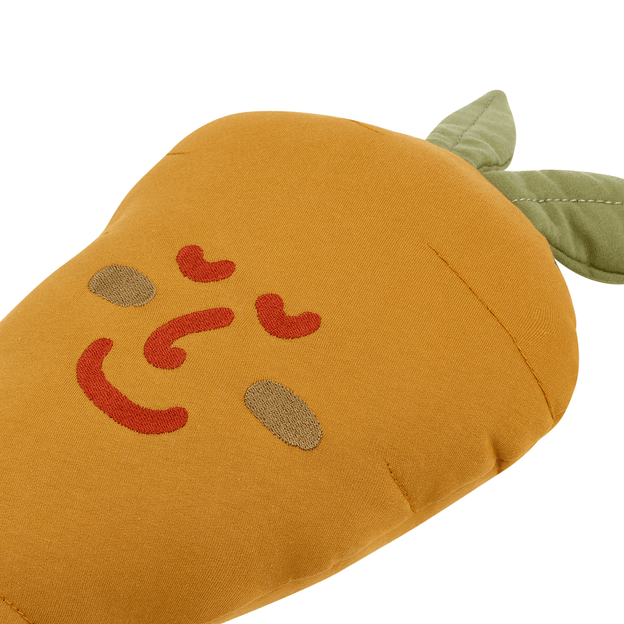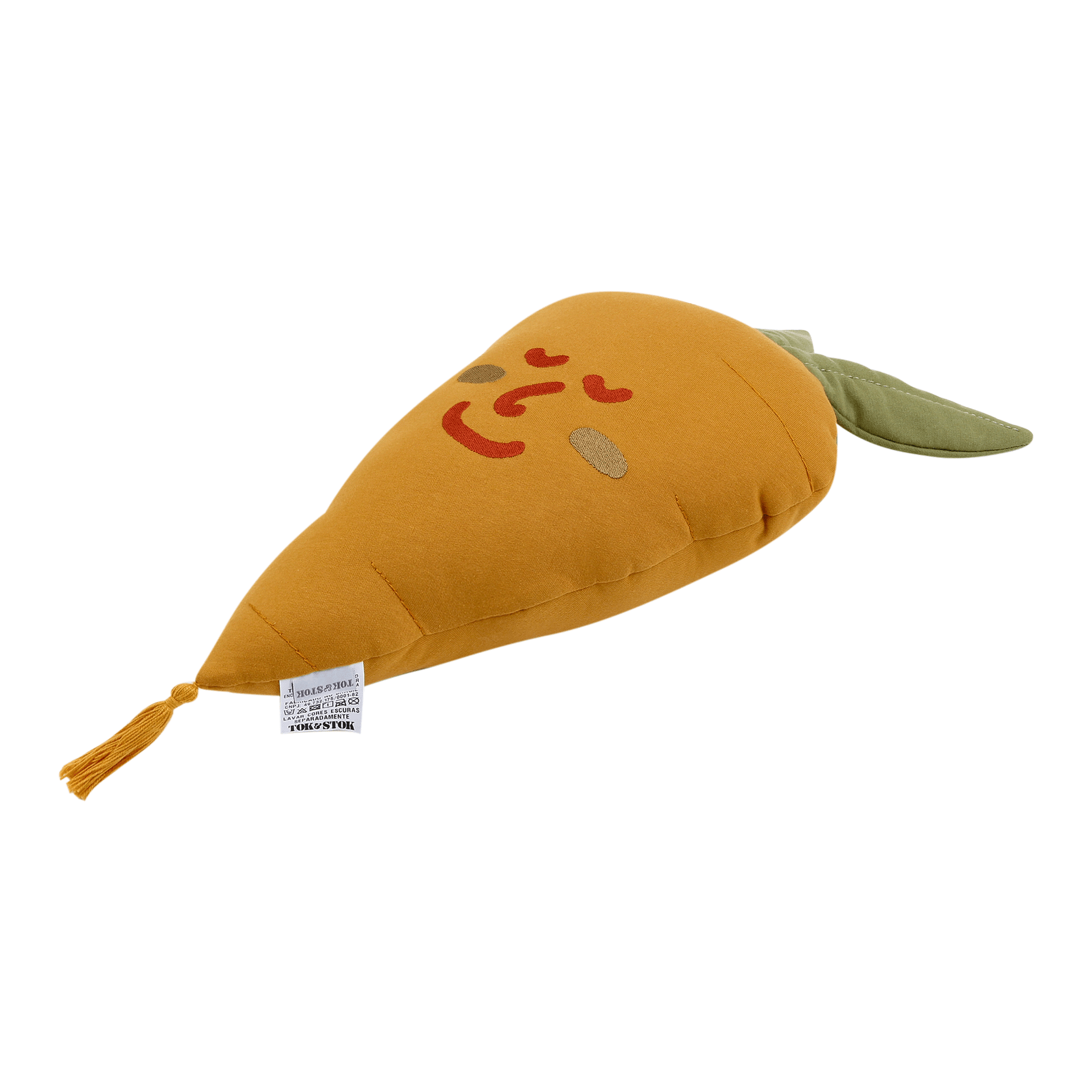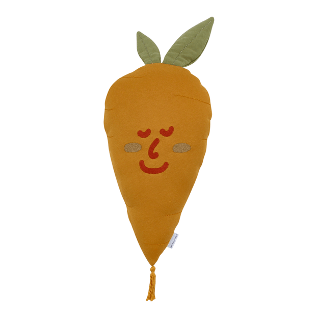 Uma coleção prá lá de especial e exclusiva que vem com novidades direto da Hortinha'' da Tok Stok.Assinada pela equipe T S Design, Da Hortinha proporciona uma divertida brincadeira de conhecer, reconhecer e até fazer amizade com frutas, legumes e uma vida mais saudável.A cartela de cores inspirada em tingimentos naturais vai fazer brotar muitas aventuras no quarto dos pequenos. A turma toda está reunida: Banana, Brócolis, Abacaxi, Berinjela, Pêra, Cebola e Melancia! De tão espertos, esses novos amiguinhos nos ensinam até a separar as sílabas!Vamos plantar essa ideia de uma infância deliciosa, repleta de sabores, nutrientes, energia e superdivertida!A almofada da coleção Da Hortinha é muito mais que uma simples peça de decoração. Com estética única, ela traz consigo o formato icônico de uma cenourinha sorridente, adicionando um toque especial a quartos infantis ou aos cantinhos preferidos dos pequenos.