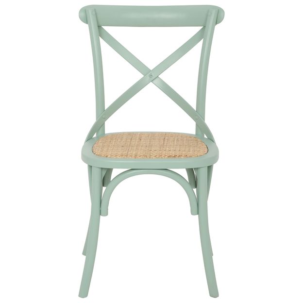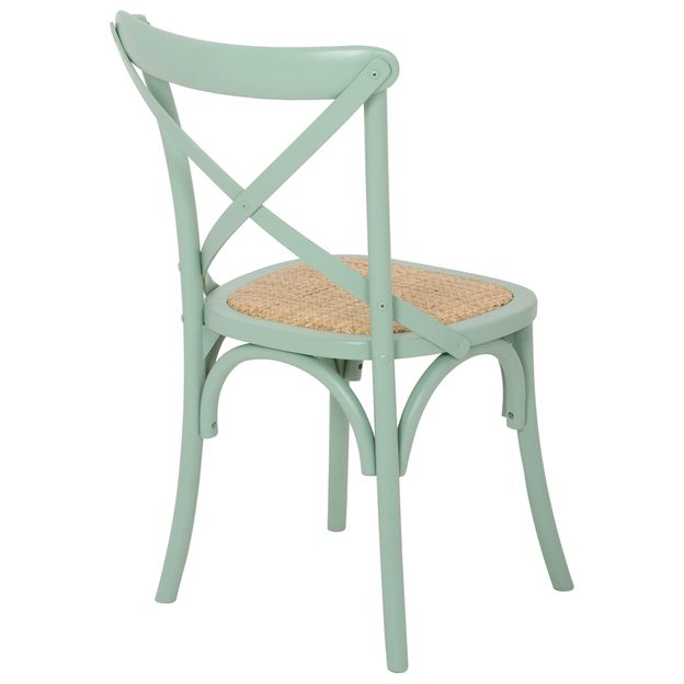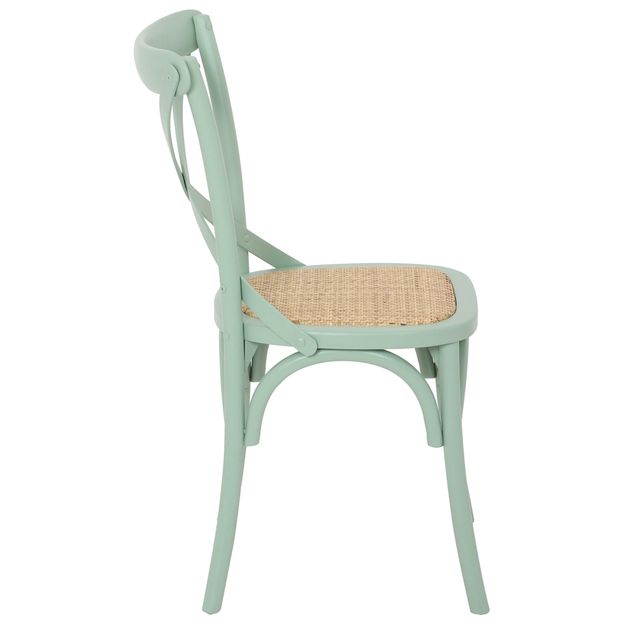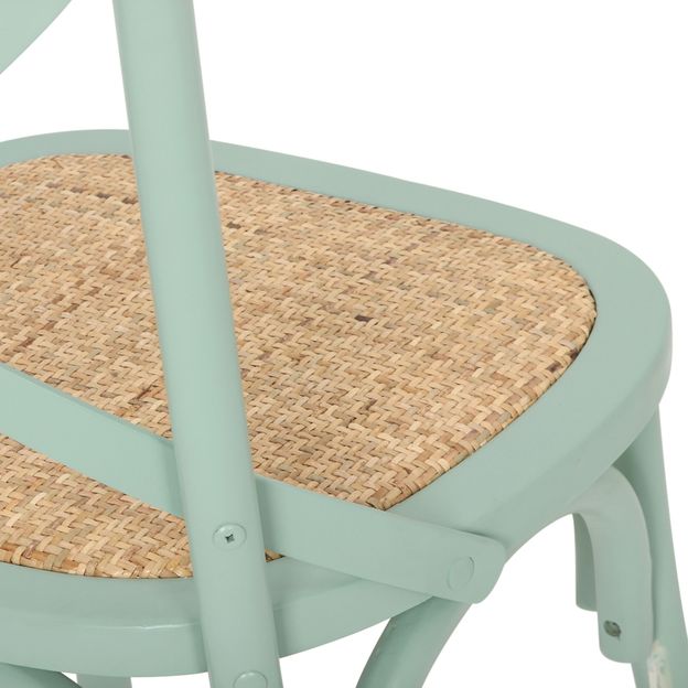Cadeira com estrutura em madeira maciça (Bétula) com acabamento em pintura poliuretânica. Possui assento em compensado revestido com espuma (D20) e rattan trançado e tingido, e sapatas plásticas.