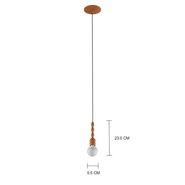 Luminária de teto, 127/220V, em madeira maciça torneada (Cedro/Jequitibá) com aplicação de verniz selador.