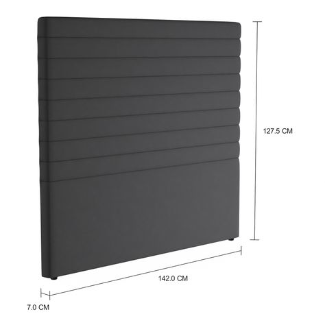 Cabeceira para cama box de casal, com estrutura em MDF revestido com espuma (D20) e tecido plano 100% poliéster. Possui aplicação de pesponto e sapatas plásticas. Para uso apoiada ao solo e fixa à parede ou na base box (suporte vendido separadamente).
