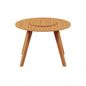 Mesa em madeira maciça (Eucalipto), certificada 'FSC®', com acabamento em tingidor impermeabilizante, tipo stain, à base de água com ação inseticida e fungicida. Possui bandeja superior, giratória, com Ø72 cm, e furo central para guarda-sol.