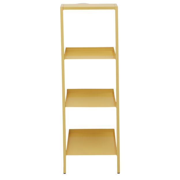 Estante de parede, com estrutura em tubo de aço com acabamento em pintura epóxi-pó. Possui 4 prateleiras em MDF (Medium Density Fiberboard) pintado e sapatas plásticas. Indicada para uso apoiada ao solo e fixa à parede.