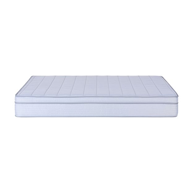 Colchão one side, com molas Nanoelastic em aço com alto teor de carbono de 2,2 mm de espessura, ortopillow com espuma de poliuretano (D26/pró-ativada e D20/pró-ativada), fibra 100% poliéster, tecido Jacquard 51% polipropileno/49% poliéster com matelassê.