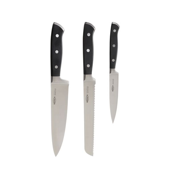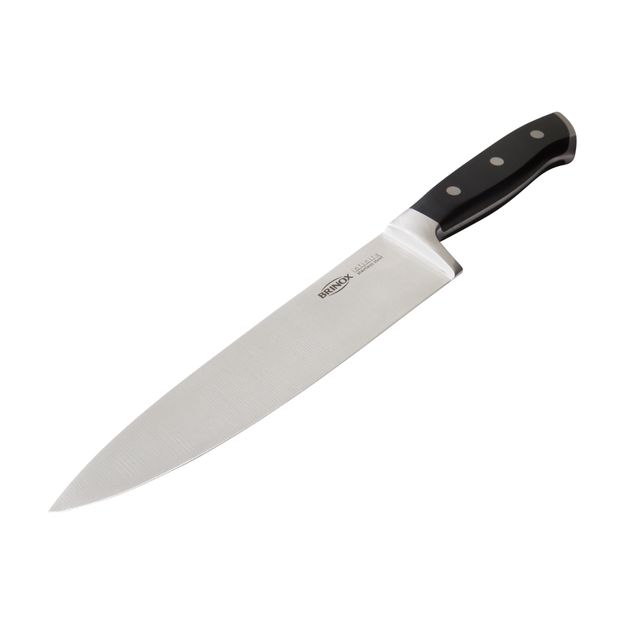 Faca do chef, em aço inoxidável com cabo ergonômico com revestimento em ABS.