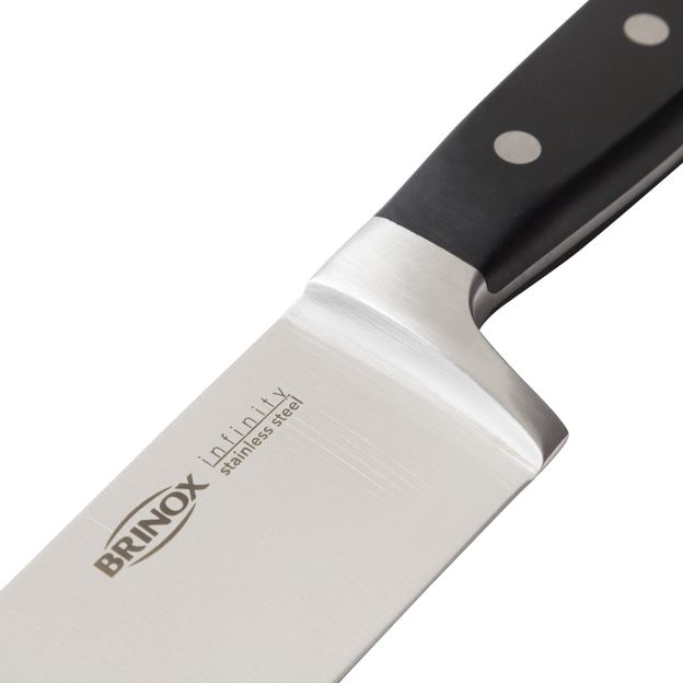 A linha infinity é essencial para facilitar a sua rotina na cozinha.A faca do chef é aquele acessório indispensável para o dia a dia.Sua lâmina em aço inoxidável altamente afiada garante cortes minuciosos e precisos. Já seu cabos ergonômico se encaixa com firmeza na mão e permite o manuseio seguro de diversos tipos de alimentos.Torne-se um grande chef com Infinity.
