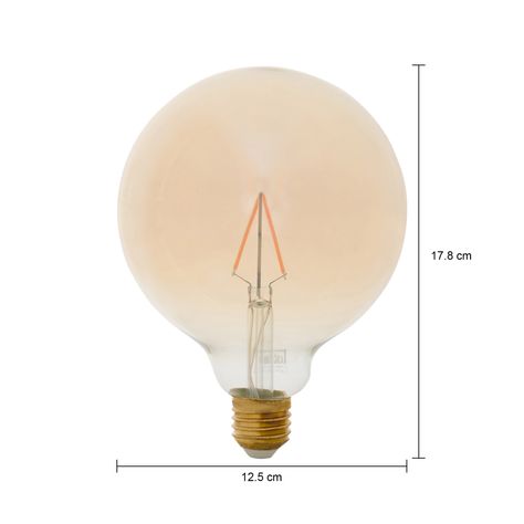 Lâmpada com iluminação por LED, com filamento, luz amarela com potência de 3 Watts, 127/220 Volts e soquete rosca E27. Sua potência equivale à de uma lâmpada incandescente de aproximadamente 25 Watts. Possui vida útil de até 15.000h.