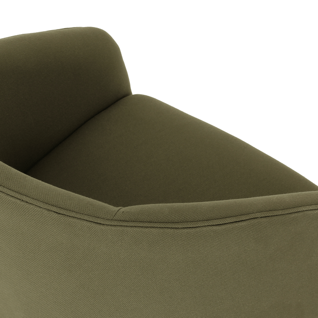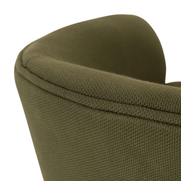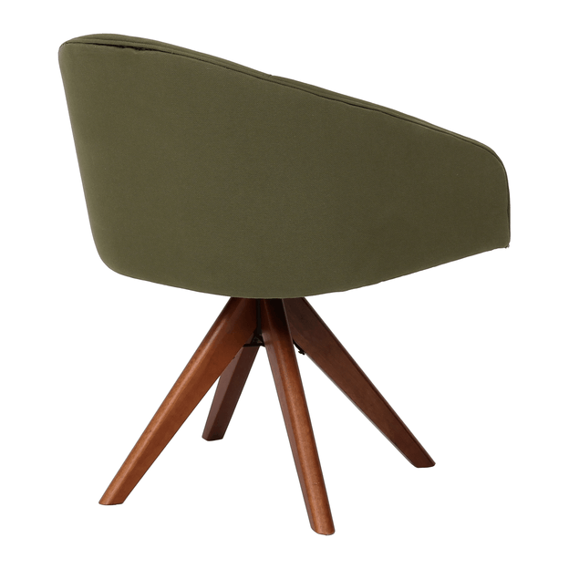 Poltrona giratória, com base em madeira maciça de reflorestamento (Eucalipto) tingida com aplicação de verniz e assento/encosto em compensado revestido com espuma (D28) e tecido 100% algodão.