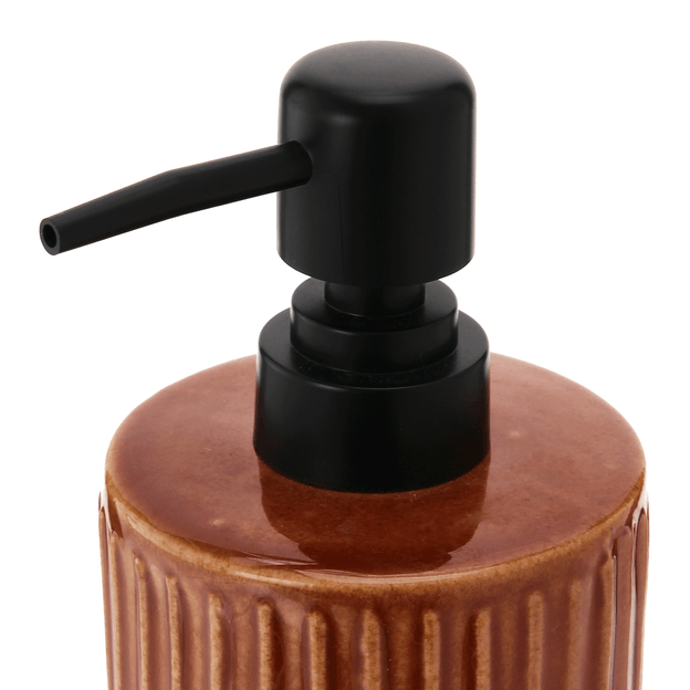 Porta-sabonete líquido em cerâmica. Possui pump em ABS.