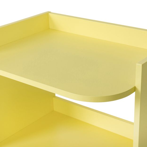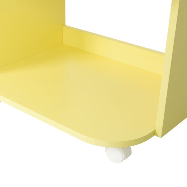 Carrinho em MDF (Medium Density Fiberboard) de 15 mm com acabamento em pintura poliuretânica. Possui 3 prateleiras e rodízios plásticos, sem travas.