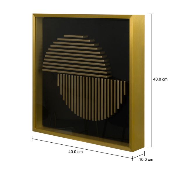 Quadro com escultura em MDF (Medium Density Fiberboard) com moldura em alumínio com acabamento em pintura epóxi-pó e visor em vidro incolor.