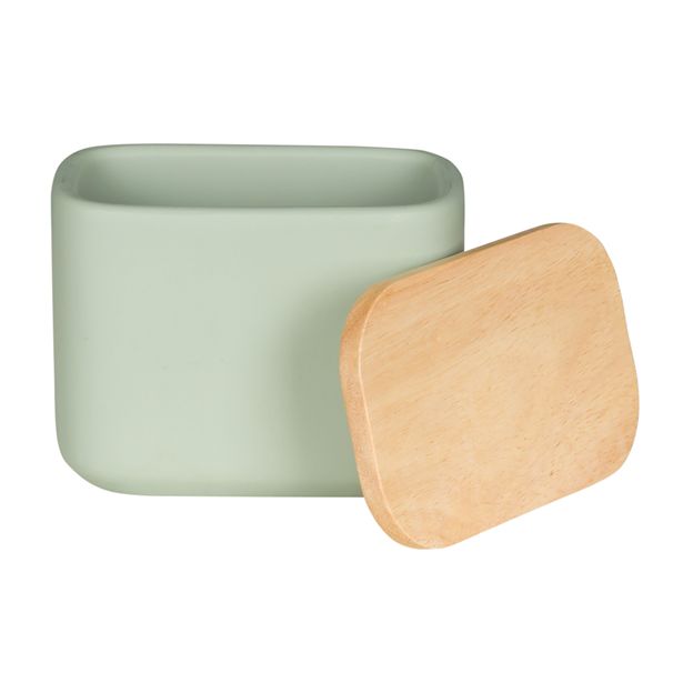 Porta-algodão em resina e madeira maciça (Rubber Wood).