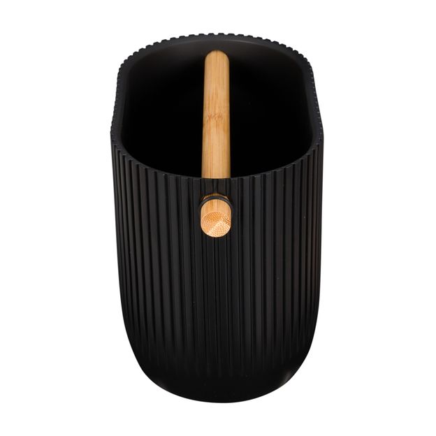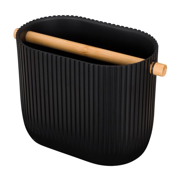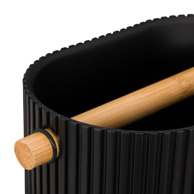 Porta-utensílios, em resina com detalhe em alto-relevo e bambu.