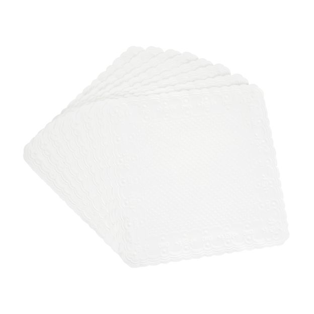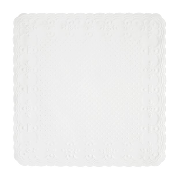Pacote com 50 guardanapos descartáveis, tamanho 20x20cm, com detalhes em alto-relevo.