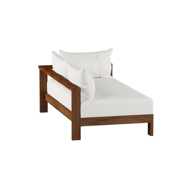 Almofada com enchimento em manta acrílica siliconizada e espuma (D23), revestida com tecido 68% algodão/32% poliéster (face superior) e bagum (face inferior) com tratamento hidrorrepelente. Capa não removível.Almofada com enchimento em manta acrílica siliconizada, revestida com tecido 68% algodão/32% poliéster com tratamento hidrorrepelente. Capa não removível.Módulo 2 lugares estrutura, em madeira maciça de reflorestamento (Eucalipto) certificada 'FSC®', com acabamento em tingidor impermeabilizante, tipo stain, com ação inseticida e fungicida. Para uso com almofadas da mesma linha (vendidas separadamente).