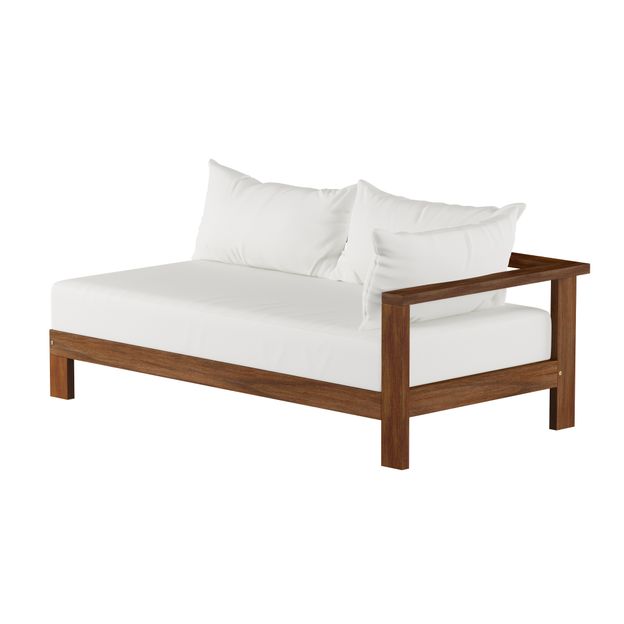 Móveis de jardim em madeira maciça reflorestada e com certificação FSC fazem parte da linha Leme. Perfeita para você renovar sua área de lazer ao ar livre com peças que mesclam conforto, sustentabilidade e design de alta qualidade. Este módulo é perfeito para ser usado em áreas externas como jardim, piscina ou varanda. Produzida em madeira maciça reflorestada com certificação FSC, ele acompanha almofadas que garante o conforto e comodidade no momento de relax. *Importante: A madeira exposta à intempérie pode apresentar alteração na sua aparência original. Por isso, sugerimos reaplicar o stain (vide instruções no manual de montagem) ao menos uma vez ao ano e apertar os parafusos periodicamente. Para maior durabilidade do produto, sugerimos guardar em ambiente coberto.*Esta composição conta com 3 almofadas de encosto e 1 almofada assento.PRODUTO FORNECIDO DESMONTADO.