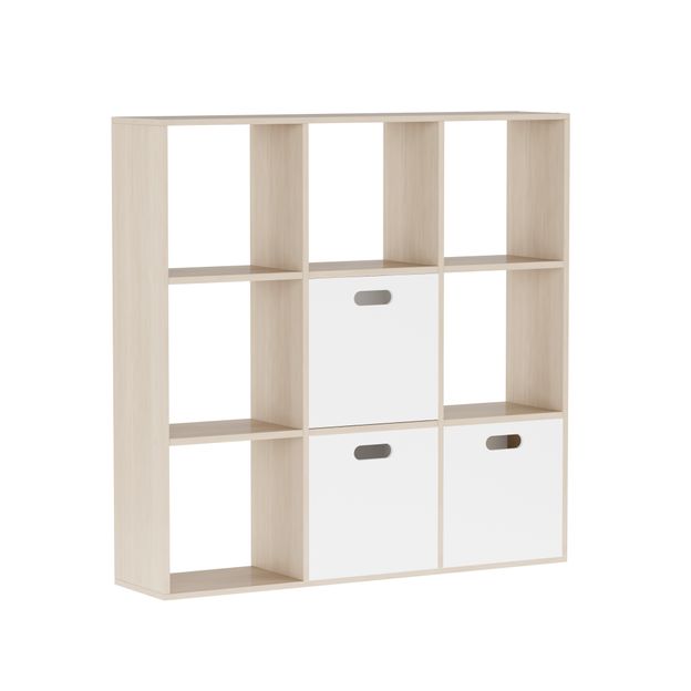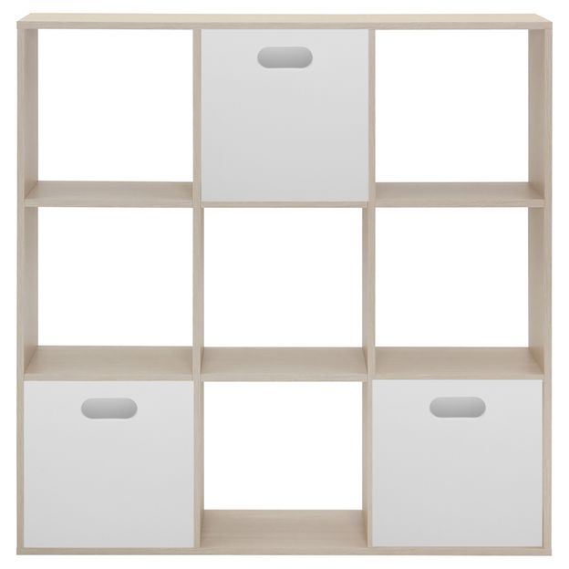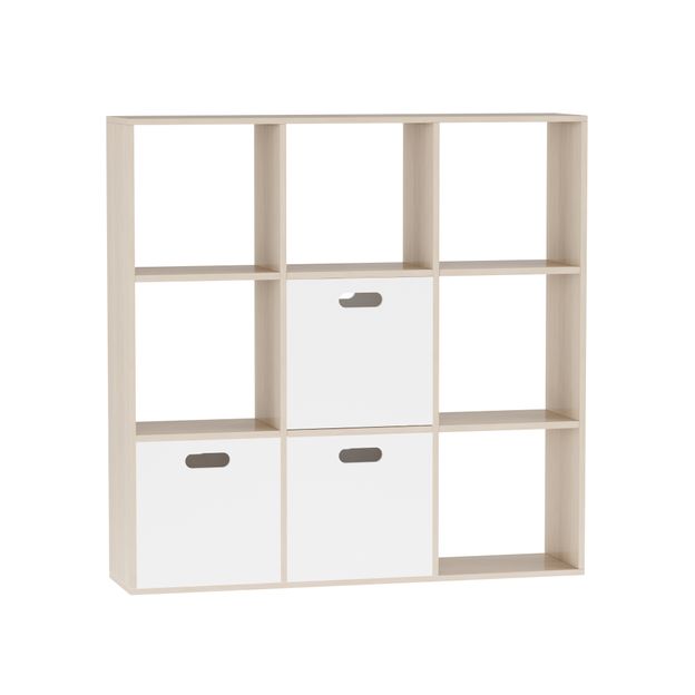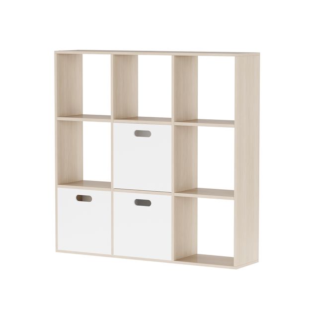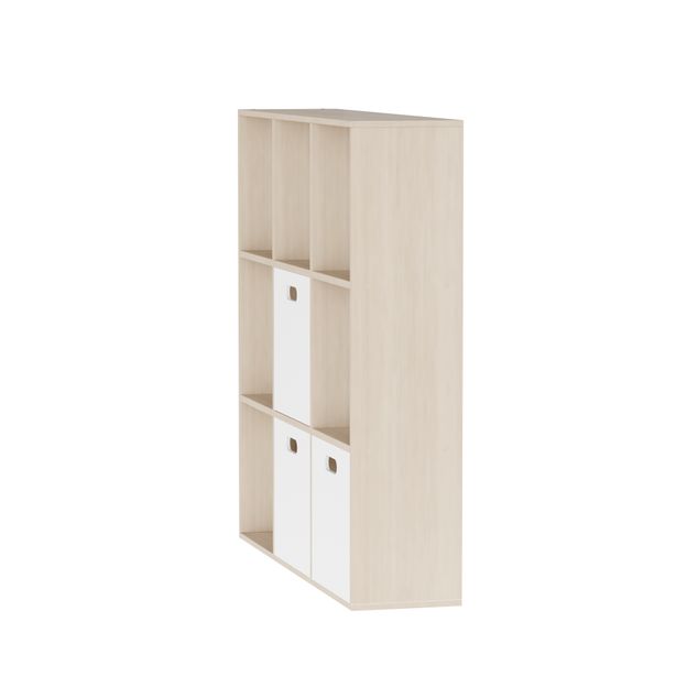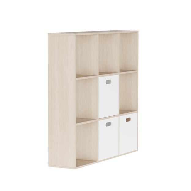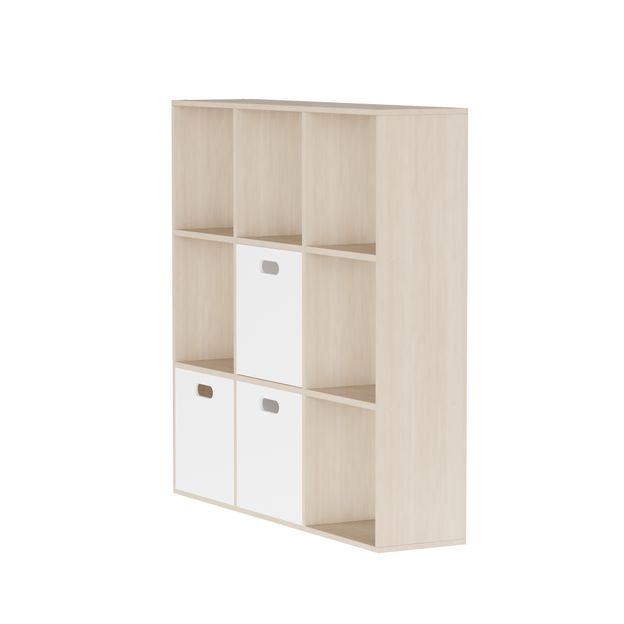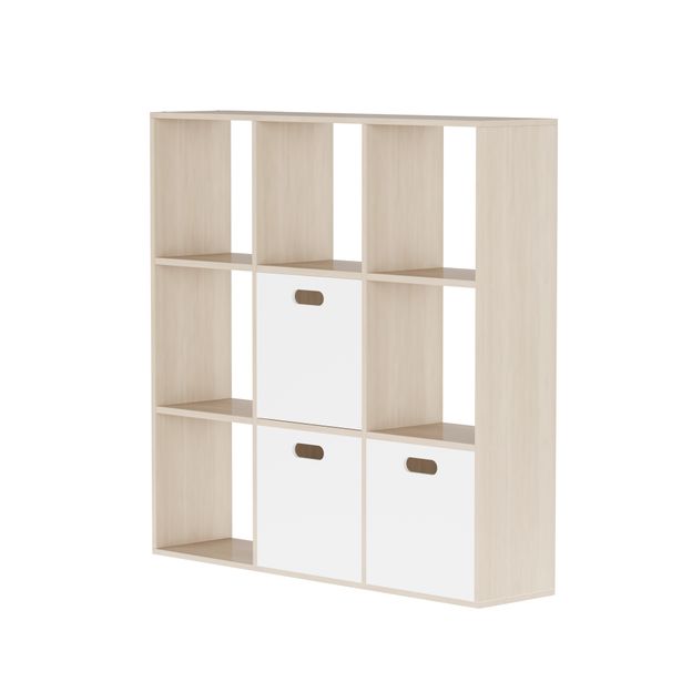 Caixa em MDF (Medium Density Fiberboard) com acabamento em pintura por impressão e bordas em PVC. Possui alças com recorte usinado. Para uso com estantes da mesma linha (vendidas separadamente).Estante em MDP (Medium Density Particleboard) com acabamento em pintura por impressão. Possui 9 nichos e sapatas plásticas para pequenos desníveis de piso. Permite instalação em paredes de alvenaria e drywall (componentes vendidos separadamente).