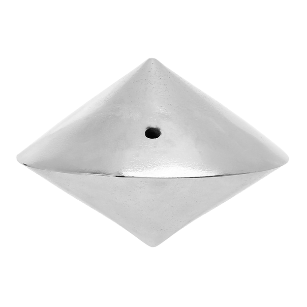 Adorno decorativo em alumínio, fundido com acabamento polido.