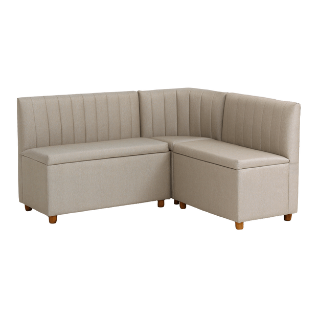 A linha de canto alemão Platz pode ser uma ótima solução para compor pequenos espaços como studios e apartamentos de plantas compactas. Assinado com exclusividade pelo designer Hakim Hazim e disponível em uma cartela de cores atuais, este canto alemão possui estrutura em madeira maciça de reflorestamento Eucalipto, percintas elásticas e espuma de poliuretano D23; matérias-primas que garantem resistência e durabilidade ideais para o dia a dia. Além disso, conta com encosto que se encaixa ao corpo proporcionando maior conforto e comodidade ao sentar-se. Já o baú permite armazenar objetos variados de maneira prática. Vale lembrar que seu sistema de abertura e fechamento basculante facilita o manuseio do produto com segurança. Composto por: 1 módulo 1 m x 54 cm, 1 módulo de 80 cm x 54 cm e 1 módulo de canto 54 cm x 54 cm. Observação: Módulo de canto não possui baú. Os pés são fornecidos desmontados; vide manual de montagem.
