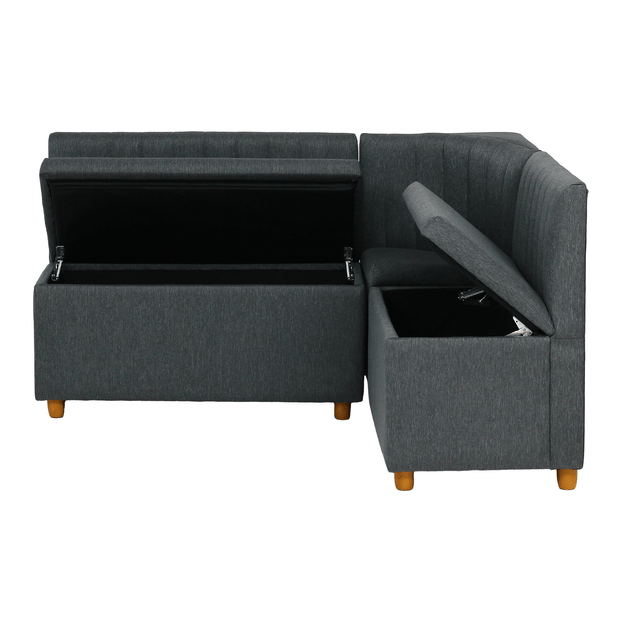 A linha de canto alemão Platz pode ser uma ótima solução para compor pequenos espaços como studios e apartamentos de plantas compactas. Assinado com exclusividade pelo designer Hakim Hazim e disponível em uma cartela de cores atuais, este canto alemão possui estrutura em madeira maciça de reflorestamento Eucalipto, percintas elásticas e espuma de poliuretano D23; matérias-primas que garantem resistência e durabilidade ideais para o dia a dia. Além disso, conta com encosto que se encaixa ao corpo proporcionando maior conforto e comodidade ao sentar-se. Já o baú permite armazenar objetos variados de maneira prática. Vale lembrar que seu sistema de abertura e fechamento basculante facilita o manuseio do produto com segurança. Composto por: 1 módulo 1 m x 54 cm, 1 módulo de 80 cm x 54 cm e 1 módulo de canto 54 cm x 54 cm. Observação: Módulo de canto não possui baú. Os pés são fornecidos desmontados; vide manual de montagem.