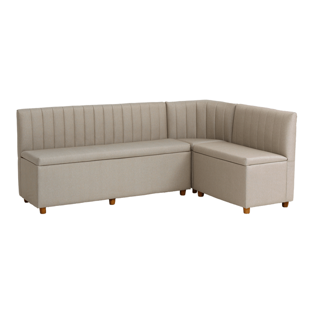 A linha de canto alemão Platz pode ser uma ótima solução para compor pequenos espaços como studios e apartamentos de plantas compactas. Assinado com exclusividade pelo designer Hakim Hazim e disponível em uma cartela de cores atuais, este canto alemão possui estrutura em madeira maciça de reflorestamento Eucalipto, percintas elásticas e espuma de poliuretano D23; matérias-primas que garantem resistência e durabilidade ideais para o dia a dia. Além disso, conta com encosto que se encaixa ao corpo proporcionando maior conforto e comodidade ao sentar-se. Já o baú permite armazenar objetos variados de maneira prática. Vale lembrar que seu sistema de abertura e fechamento basculante facilita o manuseio do produto com segurança. Composto por: 1 módulo 1,50 cm x 54 cm, 1 módulo de 80 cm x 54 cm e 1 módulo de canto 54 cm x 54 cm. Observação: Módulo de canto não possui baú. Os pés são fornecidos desmontados; vide manual de montagem.