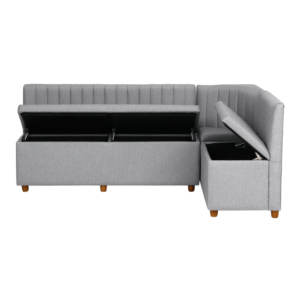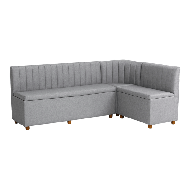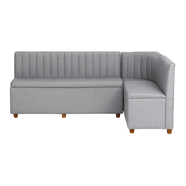 A linha de canto alemão Platz pode ser uma ótima solução para compor pequenos espaços como studios e apartamentos de plantas compactas. Assinado com exclusividade pelo designer Hakim Hazim e disponível em uma cartela de cores atuais, este canto alemão possui estrutura em madeira maciça de reflorestamento Eucalipto, percintas elásticas e espuma de poliuretano D23; matérias-primas que garantem resistência e durabilidade ideais para o dia a dia. Além disso, conta com encosto que se encaixa ao corpo proporcionando maior conforto e comodidade ao sentar-se. Já o baú permite armazenar objetos variados de maneira prática. Vale lembrar que seu sistema de abertura e fechamento basculante facilita o manuseio do produto com segurança. Composto por: 1 módulo 1,50 cm x 54 cm, 1 módulo de 80 cm x 54 cm e 1 módulo de canto 54 cm x 54 cm. Observação: Módulo de canto não possui baú. Os pés são fornecidos desmontados; vide manual de montagem.