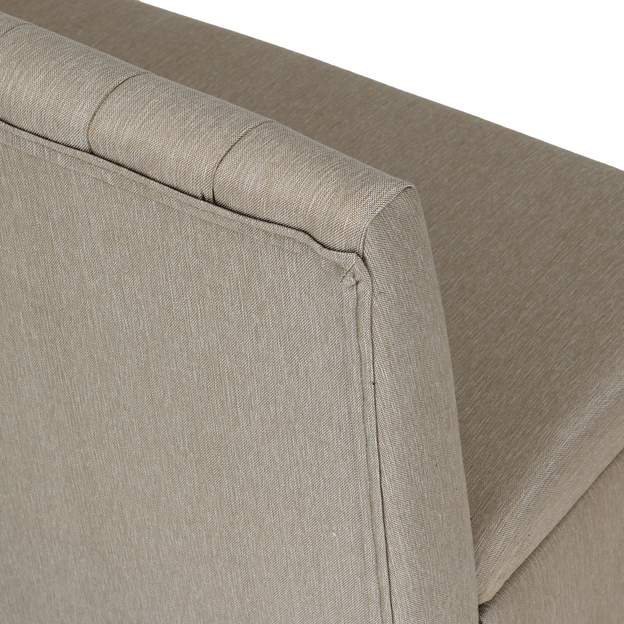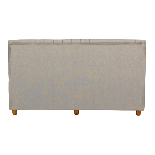 Canto alemão, modular, com estrutura em madeira maciça de reflorestamento (Eucalipto), percintas elásticas, espuma de poliuretano (D23/assento e D23/encosto) e tecido tramado 73% polipropileno/27% poliéster.