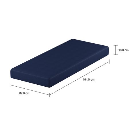 Almofada com enchimento em manta acrílica siliconizada e espuma (D20), revestida com tecido 100% poliéster (face superior) e bagum (face inferior) com tratamento hidrorrepelente. Capa não removível.