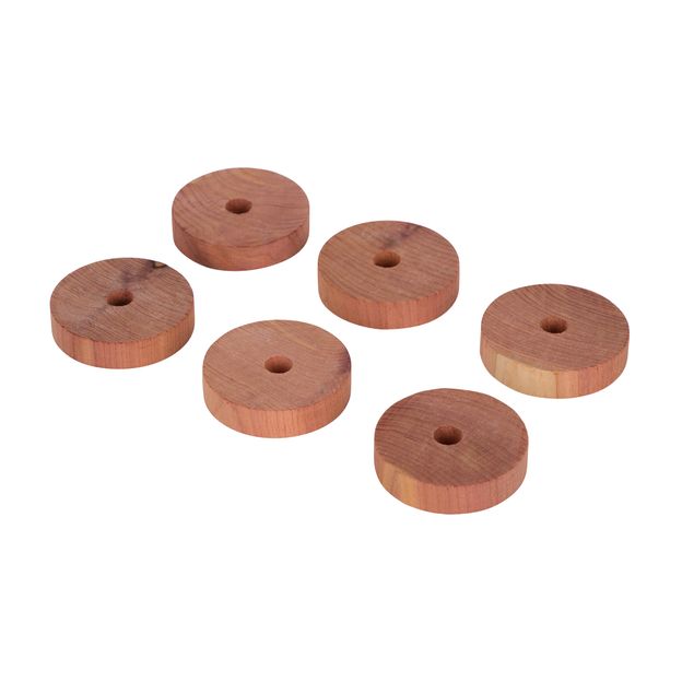 O aroma natural dos anéis Cedrus protege suas roupas contra o mofo, traças e elimina odores indesejados. Eles são projetados para uso no gancho de cabides abrigados em closets e guarda-roupas.Para prolongar a vida útil dos anéis, lixe-os levemente após 3-6 meses de uso.Para garantir sua eficácia, recomendamos a substituição total após 12 meses.