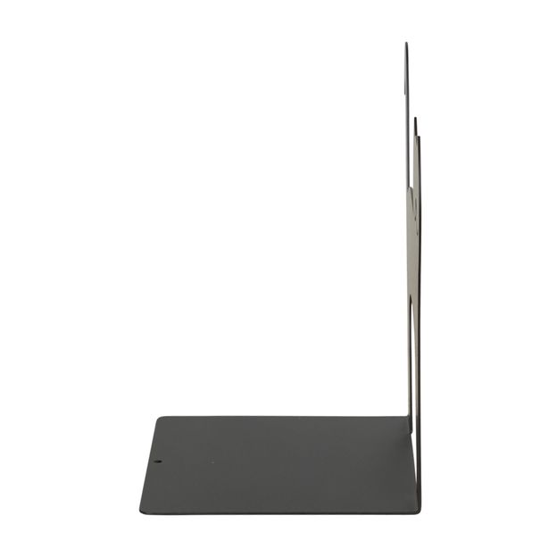 Aparador de livros em chapa de aço dobrada com acabamento em pintura epóxi-pó. Possui detalhe vazado a laser.