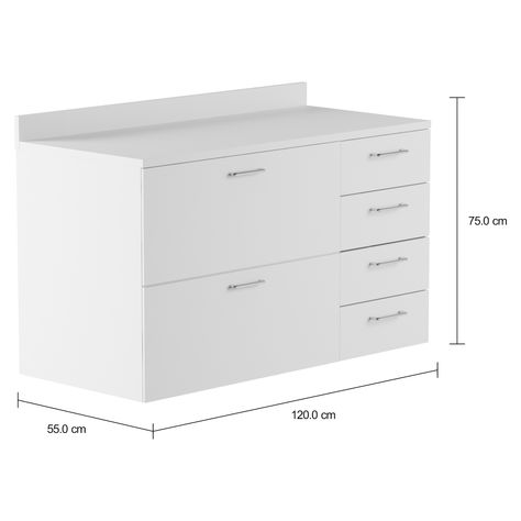 Armário inferior em MDF (Medium Density Fiberboard) revestido com laminado melamínico de baixa pressão, com bordas em PVC. Possui 1 porta basculante e 1 gaveta com corrediças telescópicas.Gaveteiro em MDF (Medium Density Fiberboard) revestido com laminado melamínico de baixa pressão, com bordas em PVC. Possui 4 gavetas com corrediças telescópicas. Acompanha 1 porta-talheres em plástico. Tampo em MDF (Medium Density Fiberboard) revestido com laminado melamínico de baixa pressão, com bordas em PVC. Para uso com módulo inferior da mesma linha (vendido separadamente).
