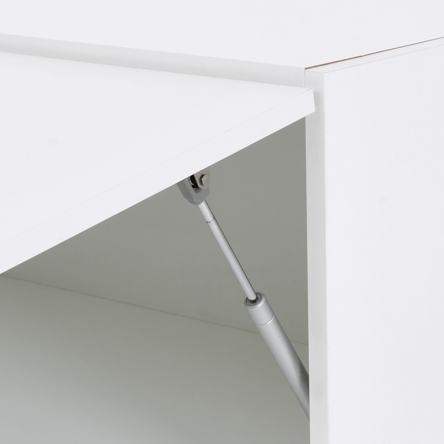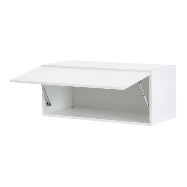 Armário superior em MDF (Medium Density Fiberboard) revestido com laminado melamínico de baixa pressão, com bordas em PVC. Possui 1 porta basculante.
