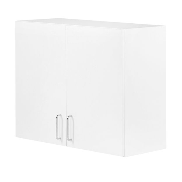 Armário superior em MDF (Medium Density Fiberboard) revestido com laminado melamínico de baixa pressão, com bordas em PVC. Possui 2 portas e 2 nichos, sendo a prateleira regulável.