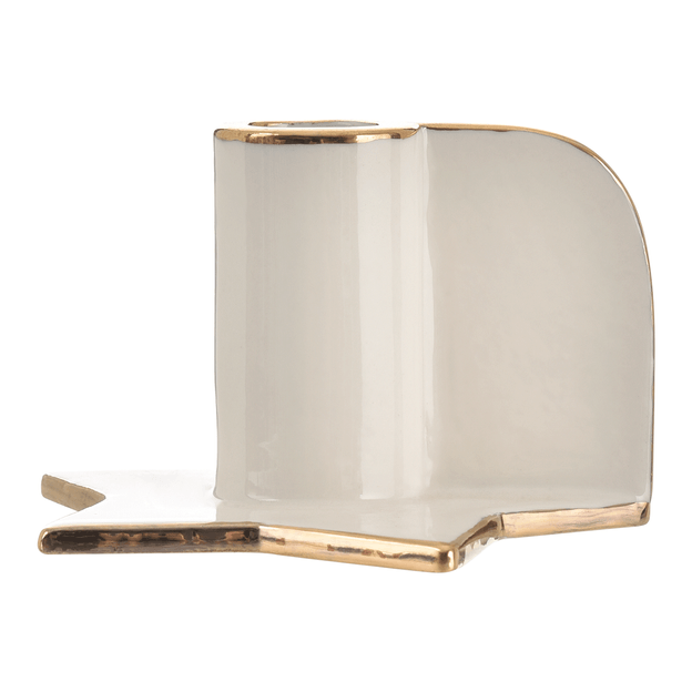 Castiçal, em porcelana com acabamento em detalhes. Possui acabamento esmaltado.