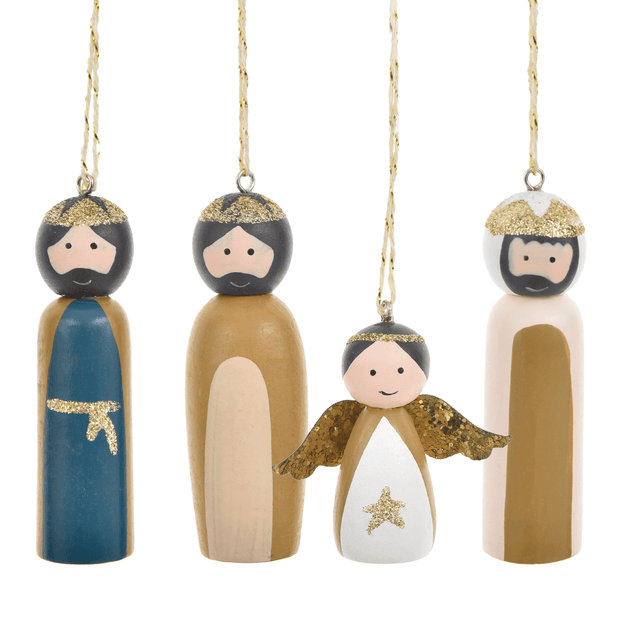 Conjunto com 4 pingentes em madeira, com detalhes em relevo. Possui cordão para que possa ser pendurado.