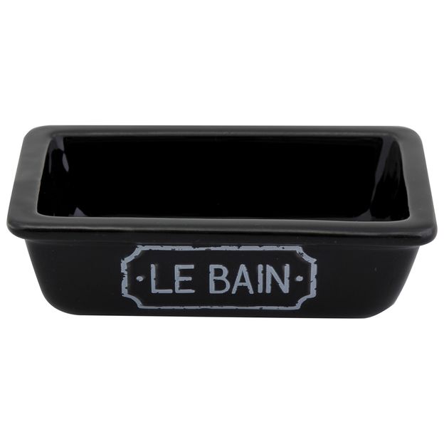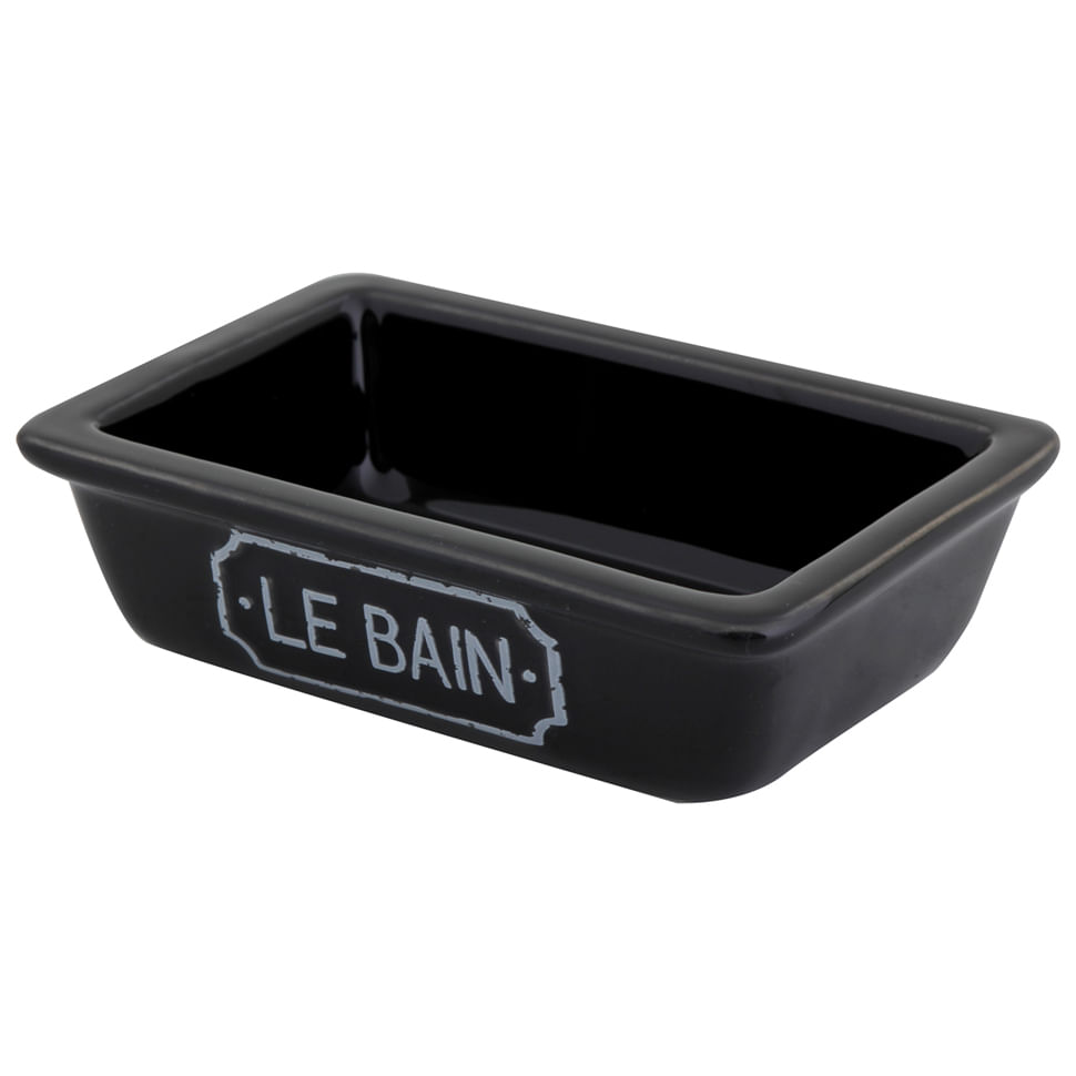 Saboneteira em cerâmica esmatada com detalhes em alto-relevo e pintura