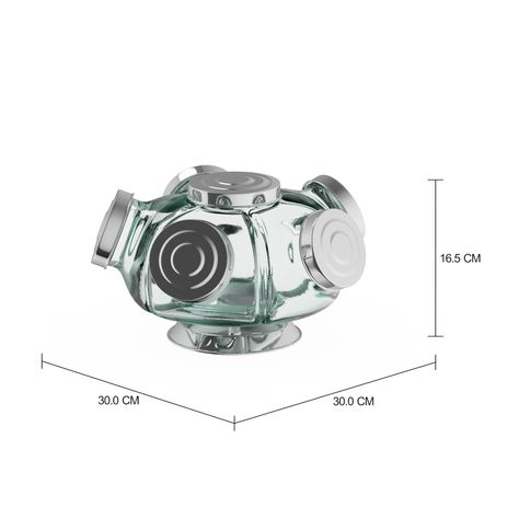 Baleiro giratório, em vidro reciclado soprado com tampa em polipropileno com acabamento em pintura. Possui 5 compartimentos.