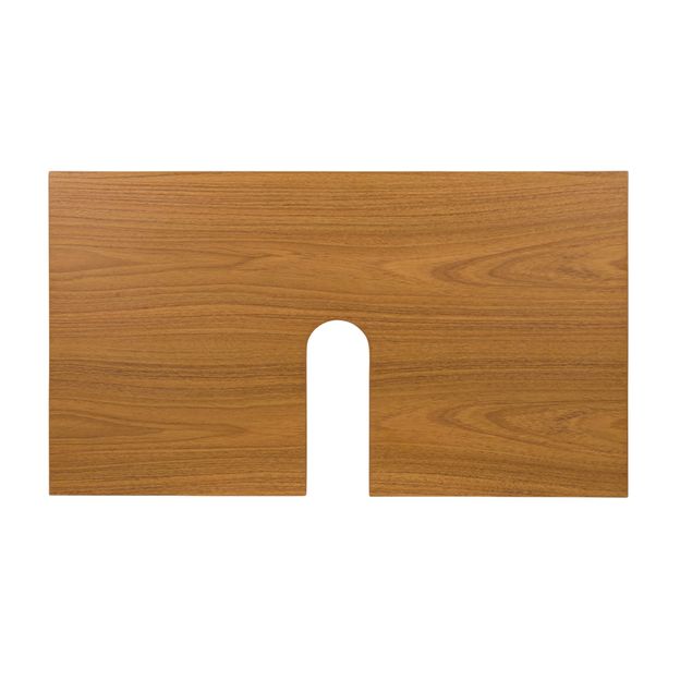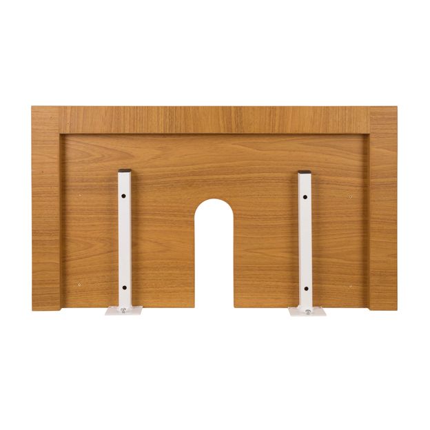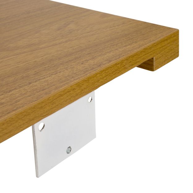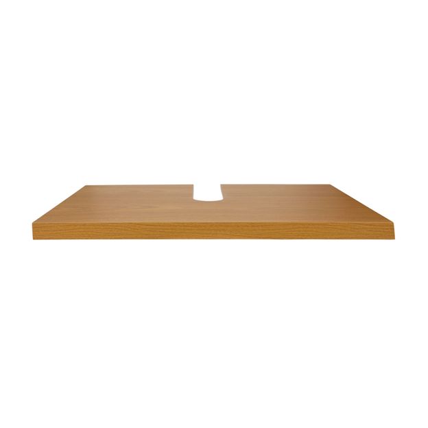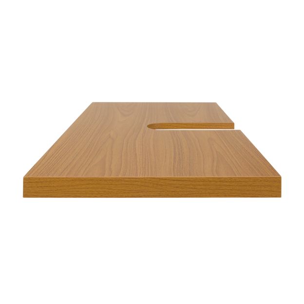 Bancada em painel de MDF (Medium Density Fiberboard) de 40 mm revestido com laminado melamínico de baixa pressão e bordas em PVC. Acompanha suportes em tubo de aço pintado em epóxi-pó. Para uso com cuba centralizada (vendida separadamente).