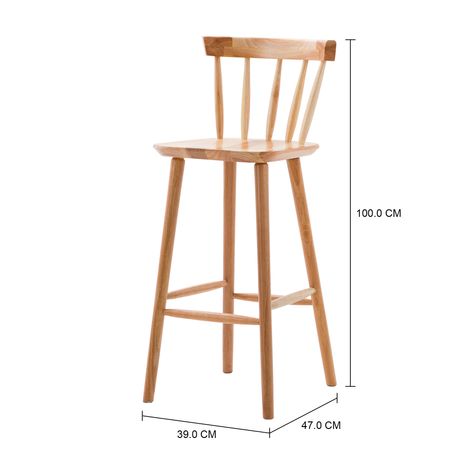 Banco alto, em madeira maciça (Cajueiro Japonês) torneada e tingida com aplicação de verniz poliuretano.