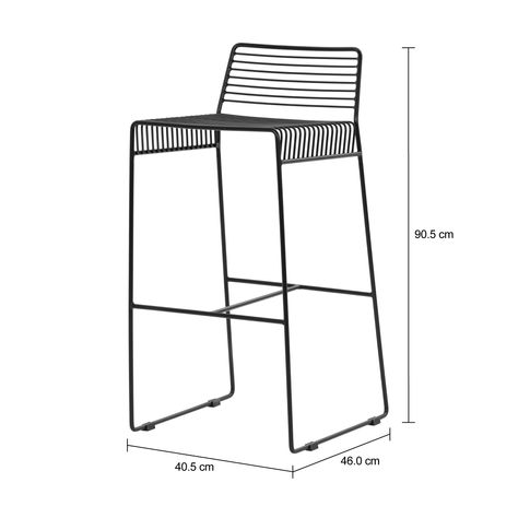 Banco alto em arame de aço carbono com acabamento em pintura epóxi-pó. Possui sapatas plásticas.