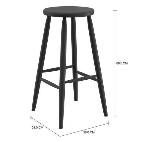 Banco alto, com estrutura em madeira maciça de reflorestamento (Pinus Elliottii) torneada e assento em MDF (Medium Density Fiberboard) com acabamento em pintura.