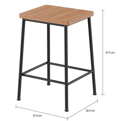 Banco baixo, com estrutura em tubo de aço com acabamento em pintura epóxi-pó e assento em madeira maciça de reflorestamento (Eucalipto) com aplicação de stain. Possui sapatas plásticas.