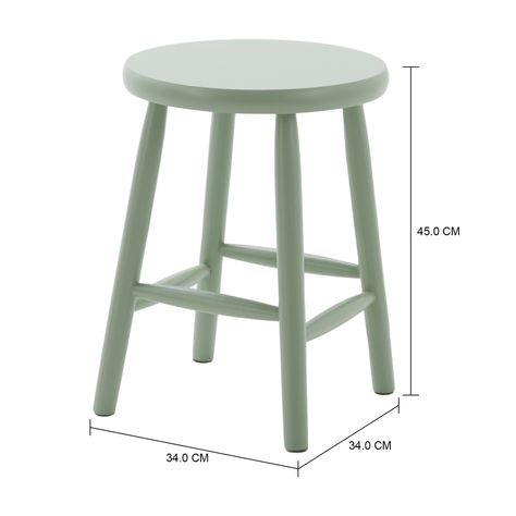 Banco baixo com estrutura em madeira maciça de reflorestamento (Pinus Elliottii) torneada e assento em MDF (Medium Density Fiberboard) com acabamento em pintura.