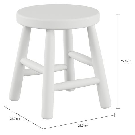 Banco infantil com estrutura em madeira maciça de reflorestamento (Pinus Elliottii) torneada e assento em MDF (Medium Density Fiberboard) com acabamento em pintura.