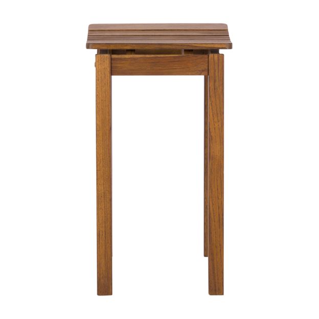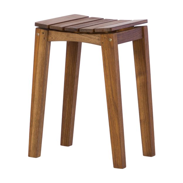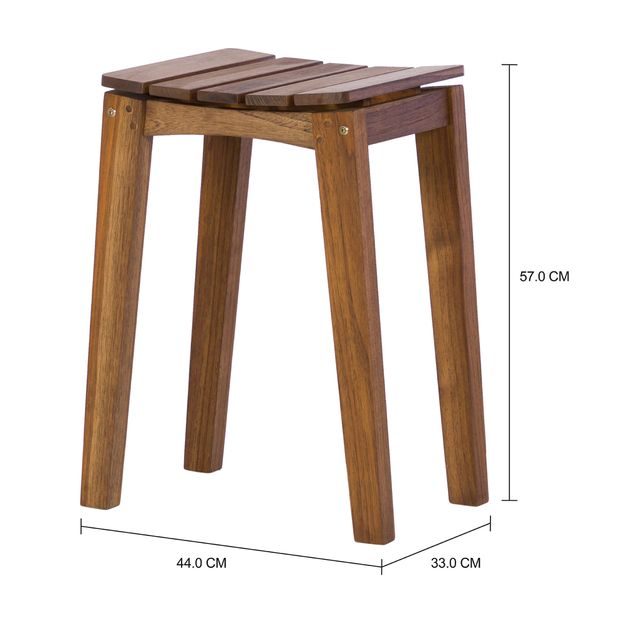 Banco médio em madeira maciça (Teca) com acabamento em tingidor impermeabilizante, tipo stain, com ação inseticida e fungicida.