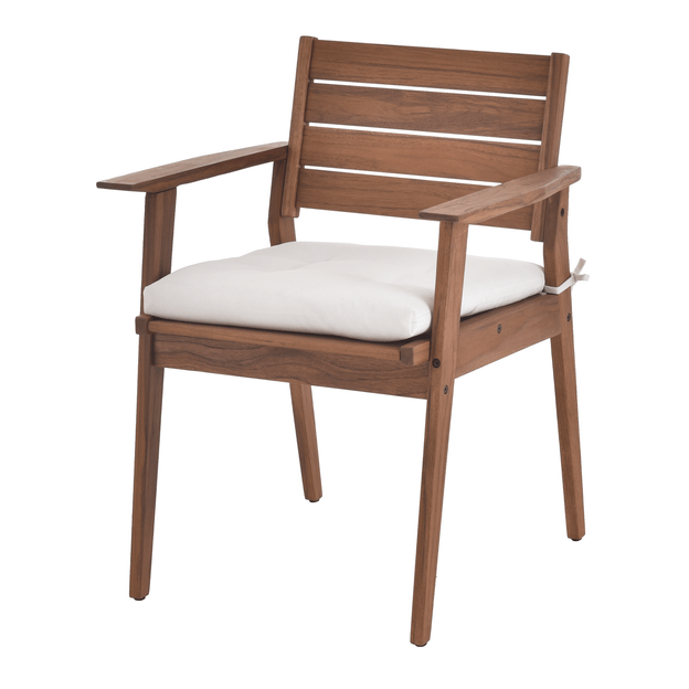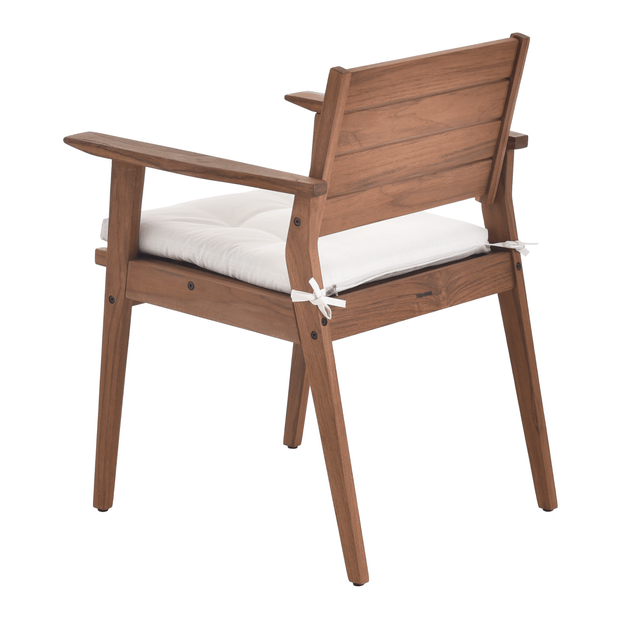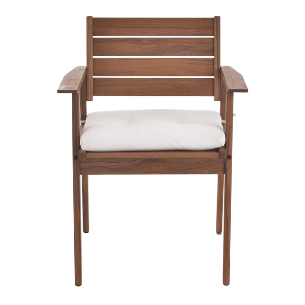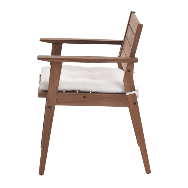 Nada melhor do que amenizar o calor dos meses mais quentes do ano organizando reuniões com a família ou com os amigos em áreas externas da sua casa. Aproveite os fins de semana prolongados para momentos de interação ao ar livre com os móveis da coleção Caraíva; uma exclusividade Tok Stok. Criada pela equipe T S Design, a cadeira Caraíva com braços é confeccionada em madeira maciça Teca, matéria-prima que garante a resistência e a durabilidade ideais para o dia a dia. Possui acabamento tingidor impermeabilizante, tipo stain, à base de água com ação inseticida e fungicida. Possui sapatas plásticas. Outro diferencial é o acabamento da madeira que permite seu uso em áreas externas (neste caso, alguns cuidados são necessários como a reaplicação do stain e guardar após o uso). Conta com almofada com enchimento em espuma de poliuretano (D20) e manta acrílica 100% poliéster, revestida com tecido 68% algodão/32% poliéster com tratamento hidro-repelente e proteção contra raios UV. Possui detalhes em capitonês e fitas para fixação.*Importante: A madeira exposta à intempérie pode apresentar alteração na sua aparência original. Por isso, sugerimos reaplicar o stain (vide instruções no manual de montagem) ao menos uma vez ao ano e apertar os parafusos periodicamente. Para maior durabilidade do produto, sugerimos guardar em ambiente coberto.OBS.: PRODUTO FORNECIDO DESMONTADO.
