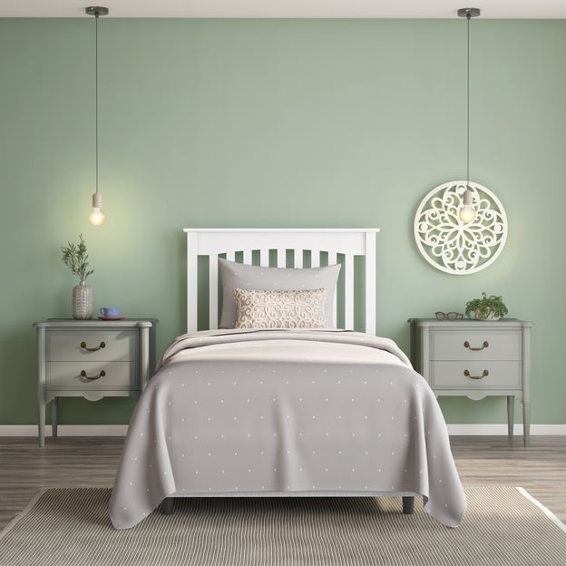 Cabeceira para cama box de solteiro, em madeira maciça de reflorestamento (Pinus Elliottii), MDF (Medium Density Fiberboard) com acabamento em pintura. Para uso fixa à base box; exceto modelo baú.