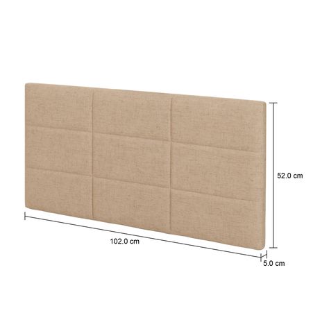 Cabeceira para cama box de solteiro, com estrutura em chapa de aglomerado revestido com espuma de poliuretano (D18) e tecido 85% poliéster/15% linho. Possui detalhes em pesponto. Para uso fixa à parede.